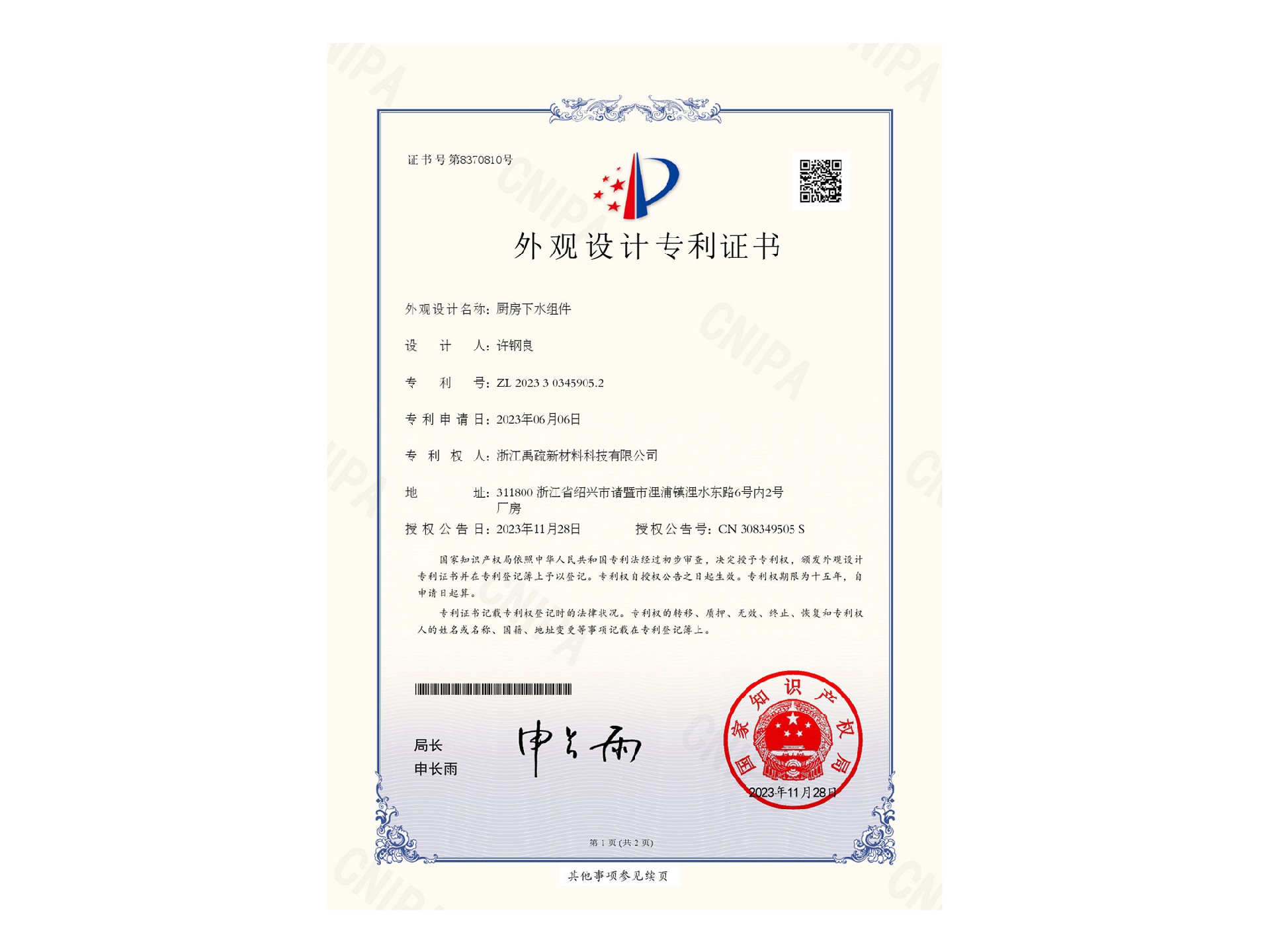 專利證書(shū)